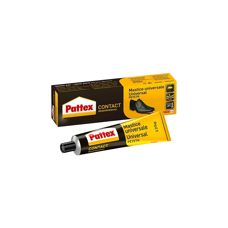 Adesivo universale a contatto per gomma, cuoio, moquettes, feltro, sughero. Rapido e di facile applicazione, non macchia e non rovina le vernici. Modello = contenuto gr.