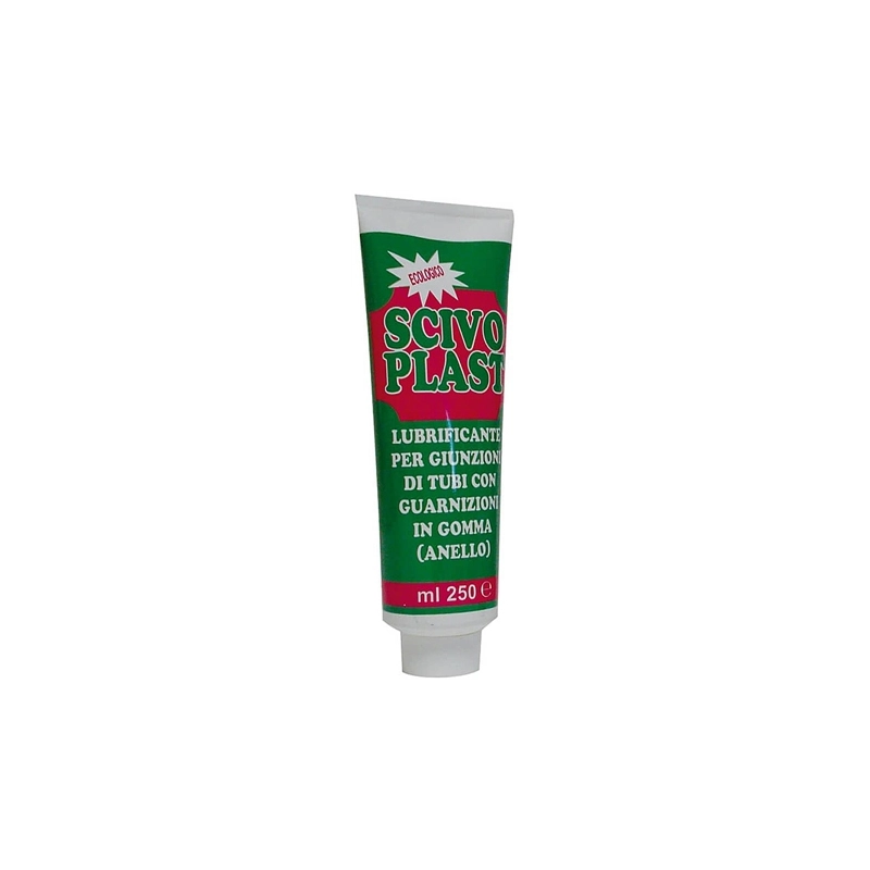 Scivolante pastoso a base acquosa, atossico e biodegradabile. Specifico per lubrificare durante la giunzione le guarnizioni in gomma (anello) di tubi in plastica, pvc, gres, ecc. Contenuto 250 ml.