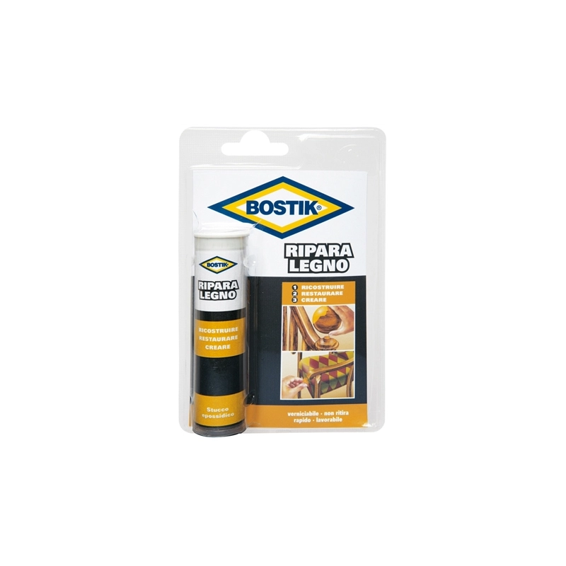 Stucco epossidico in stick. Ripara, salda, ricostruisce e stucca qualsiasi tipo di legno. Indurisce in pochi minuti. Riempitivo. Utilizzabile anche sott'acqua. Colore beige. Contenuto 56 gr.