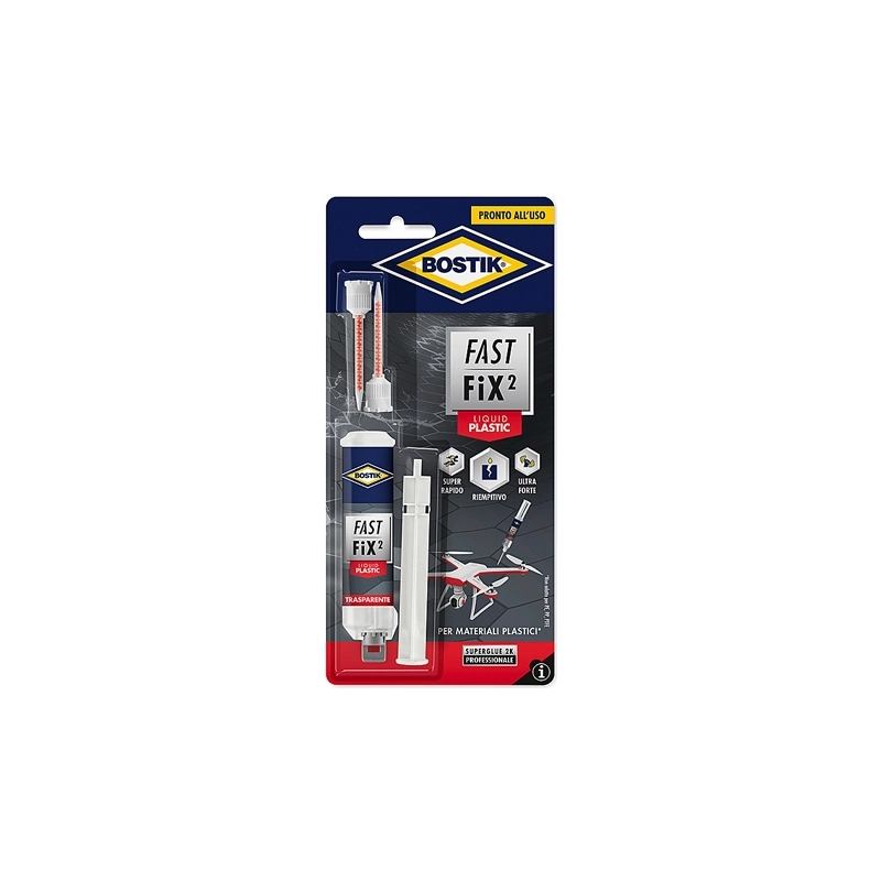 Forte adesivo di riparazione bicomponente riempitivo a base di cianoacrilato. La consistenza in gel consente applicazioni in tutte le direzioni, anche in verticale. Incolla e ripara in pochi secondi molti tipi di oggetti in plastica come per esempio PVC, polistirene, policarbonato, ABS e PMMA. Non indicato per PE, PP e PTFE. Resistente all'acqua. Senza solventi. Trasparente.
