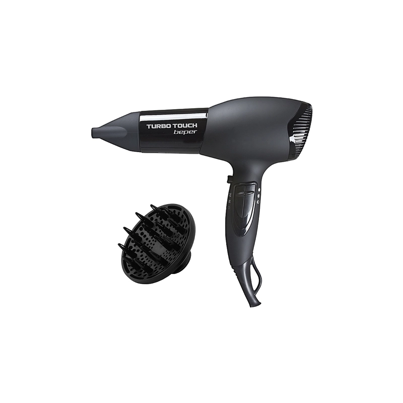 Asciugacapelli con corpo in ABS. 2000 Watt. A 2 velocita'. Tasto colpo aria fredda. Concentratore e diffusore d'aria. Manico gommato antiscivolo. Con gancio per appendere.