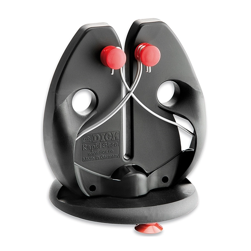 Strumento brevettato per la finitura dei coltelli. Grazie alle molle affilatrici si ottiene il ripristino del filo di taglio e la lucidatura della lama, mantenendo i coltelli sempre taglienti. Dotata di base di sostegno.