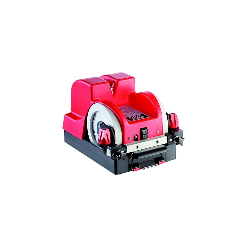 Permette di affilare e sbavare coltelli in maniera precisa e rapida con mole ad acqua. La macchina dispone di magneti che garantiscono un'affilatura assolutamente precisa. In dotazione supporto per forbici