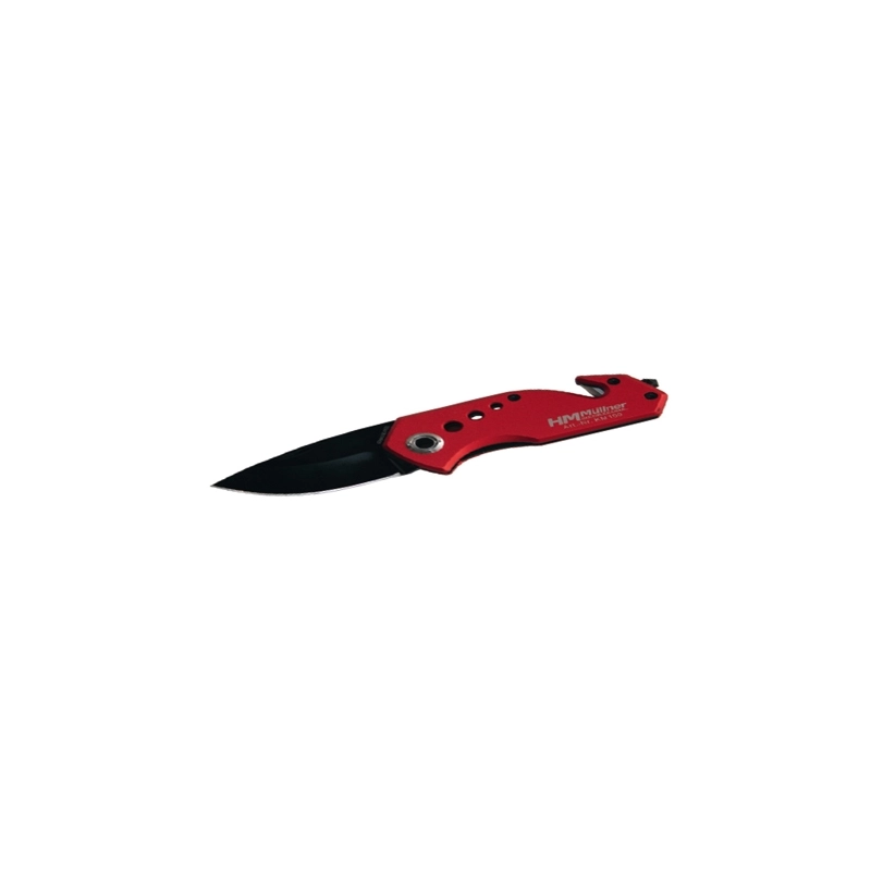 Coltello Sos auto. Corpo in alluminio, lama in acciaio inox AISI 420. Sistema di taglio cintura sicurezza e rompi vetro integrato. Clip per appendere alla cintura.