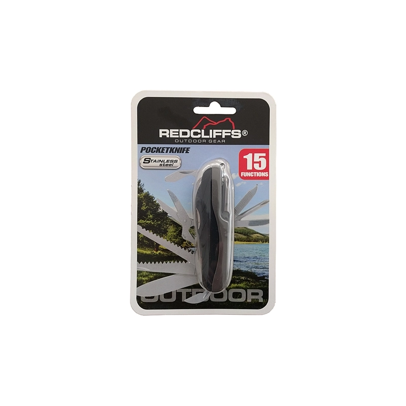 Coltello tascabile a 15 funzioni. Manico bicomponente.