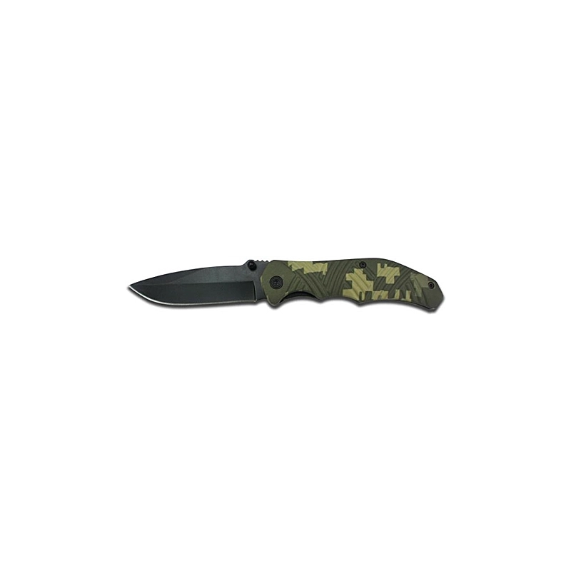 Lama in acciaio inox colore nero. Manico mimetico in ABS. Lunghezza 20 cm.