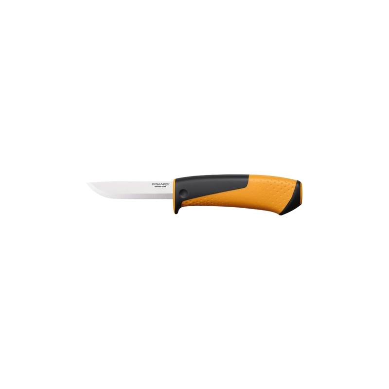 Coltello multiuso con lama inox. Con fodero affilalama. Impugnatura ergonomica. Lunghezza 215 mm.