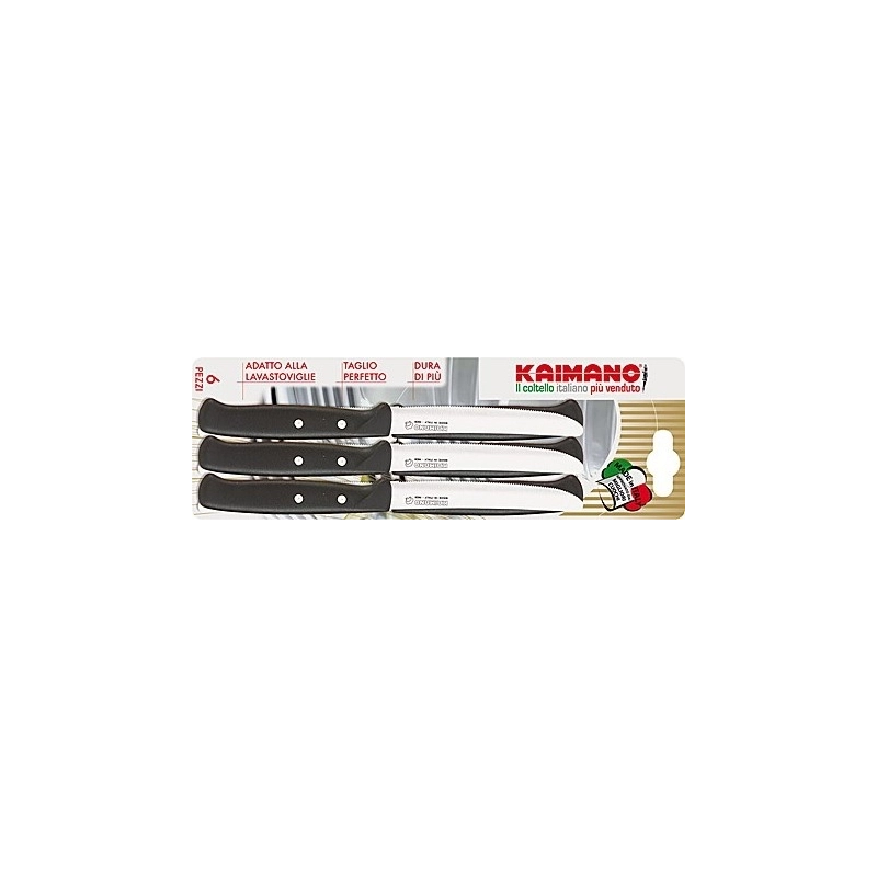 Coltello KAIMANO da tavola serie PREMIUM a punta tonda. Manico nero. Taglio perfetto. Adatto alla lavastoviglie. Blister da 6 pezzi.