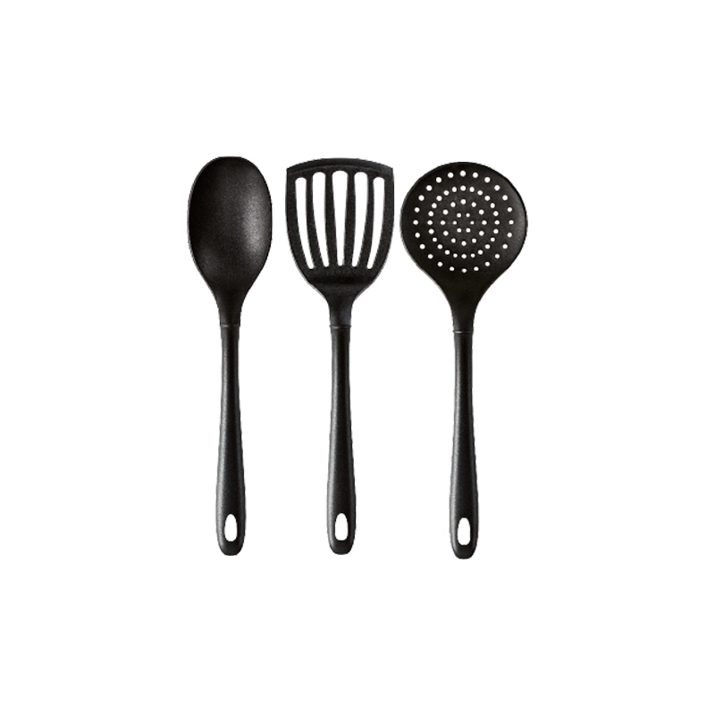 Set composto da: 1 cucchiaione, 1 pala fritto e 1 schiumarola. Resistenza fino a 220 gradi.