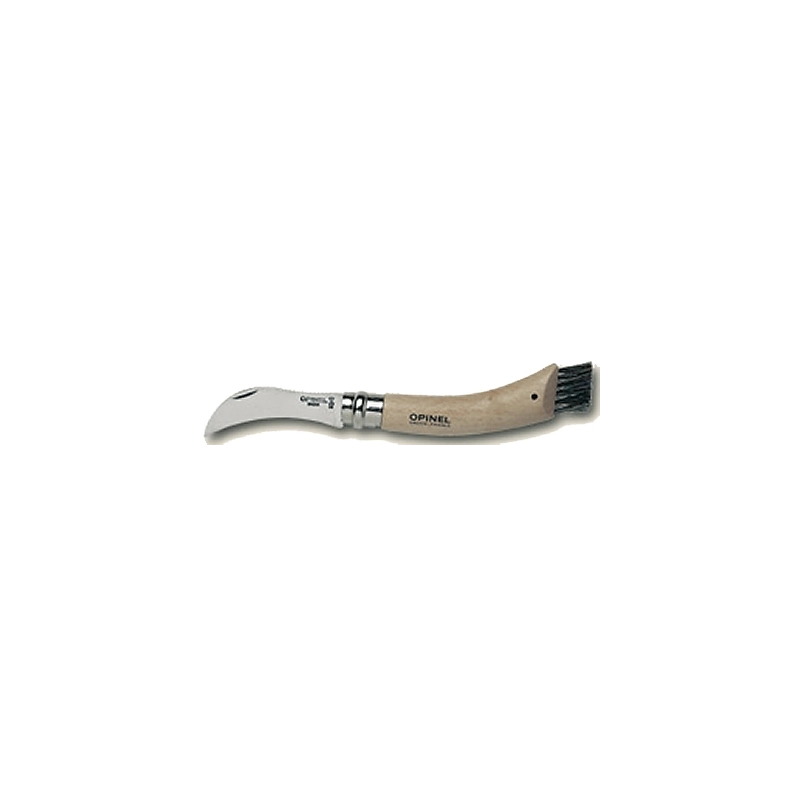 Lama in acciaio inox , manico in faggio verniciato. Manico con setole e dorso lama dentato per la pulizia dei funghi. Dotato di dispositivo bloccalama "virobloc". Lama num. 8 - mm 70