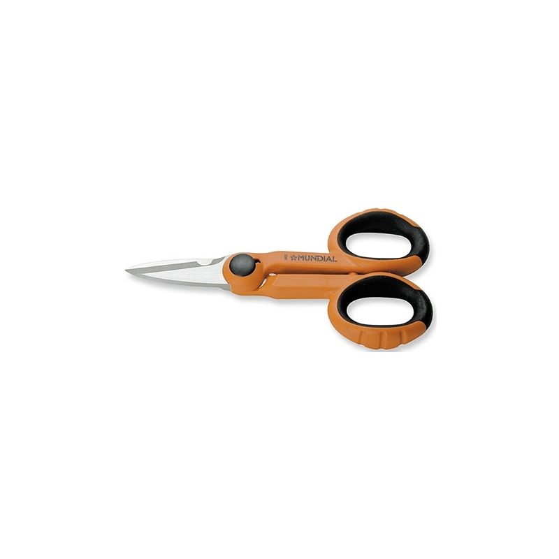Forbice professionale per elettricisti con manico bicomponente e lama in acciaio inox. Anima interamente in metallo. Lunghezza 145 mm.