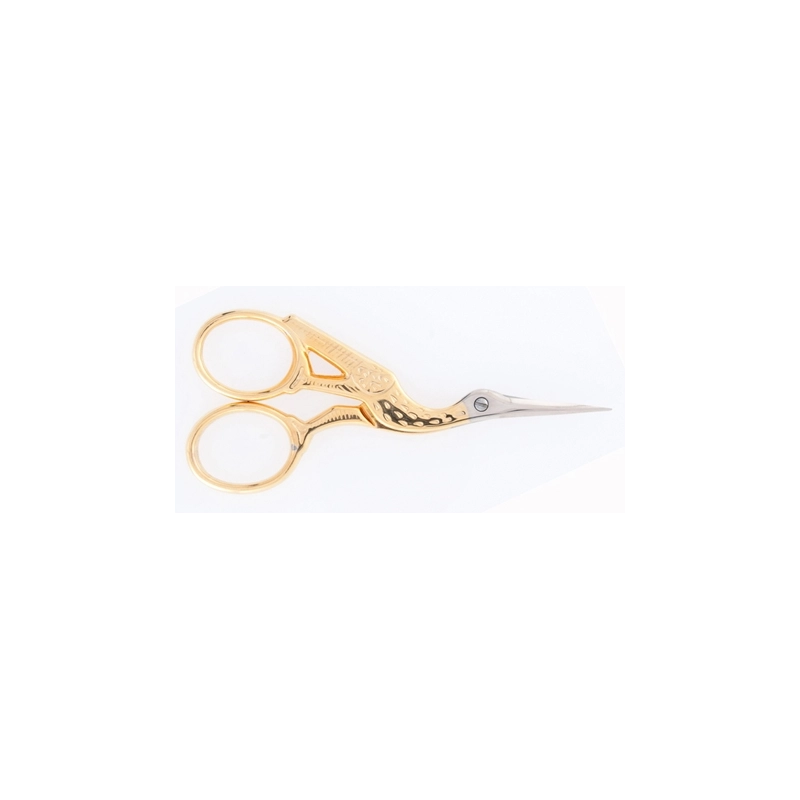Forbici cucito-ricamo in acciaio temperato nichelato, impugnatura dorata. Lunghezza mm 90. Made in Italy.