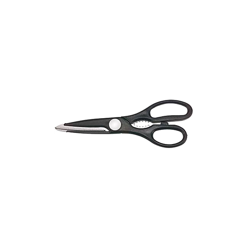 Forbice multiuso, lame in acciaio inossidabile. Manici in plastica. Inserto per schiaccianoci. Lunghezza 215 mm.