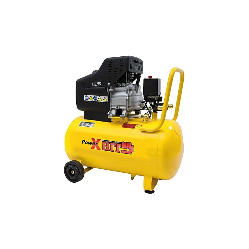 Serbatoio da 50 lt. V 230 - potenza 2 HP. 1500 Watt. Pressione massima 8 bar. Con connettore attacco rapido e maniglia di trasporto. Peso 26 kg.