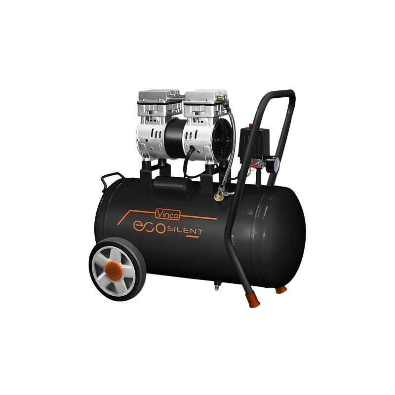 Compressore OIL-LESS supersilenziato 59 dB. 230 V. 0,75 Kw. Aria aspirata 180 lt/min. Pressione max 8 bar. 1440 rpm giri/min. Maniglia comfort. Ruote maggiorate. Dimensioni 68x34x63 cm. Capacita' serbatoio 50 lt. Peso 23 kg.