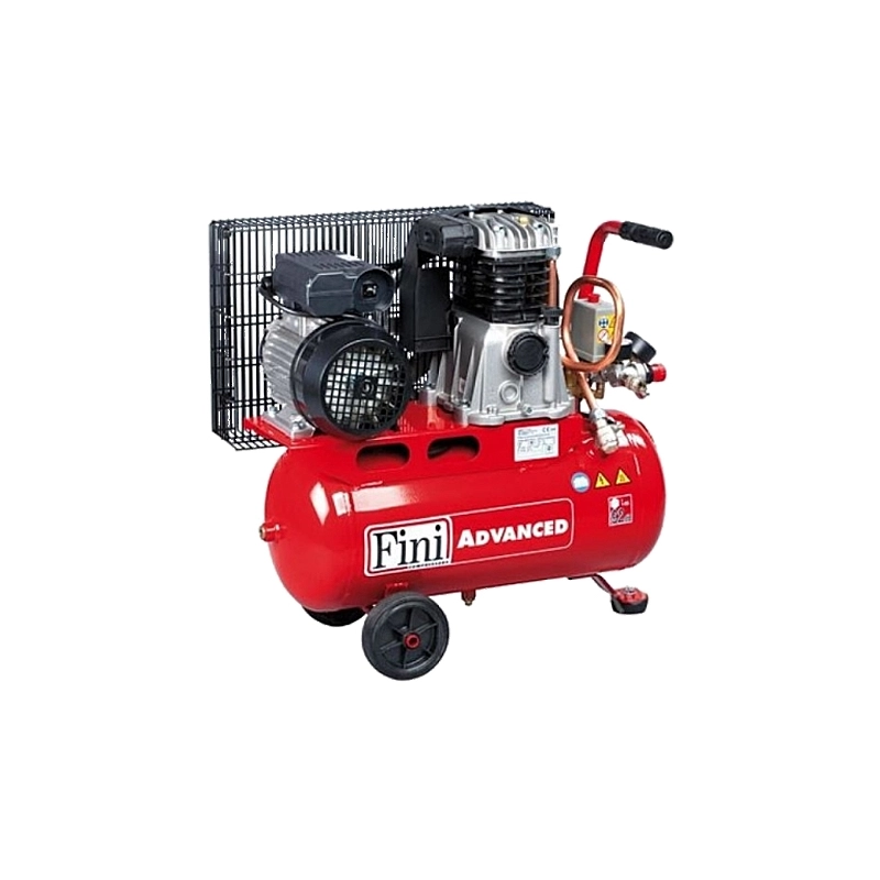 Compressore traino cinghia monostadio. V 230 - potenza kW 1,5 - aria aspirata l/min 165. Pressione max bar 10 - numero cilindri 2 - serbatoio l 25