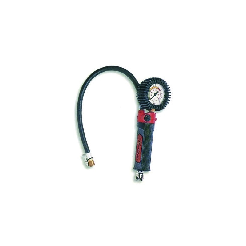 Dotata di manometro e di comando a pulsante. Manometro diametro mm 63 tarato fino a bar 10. Tubo in gomma da mm 400. Attacco 11A