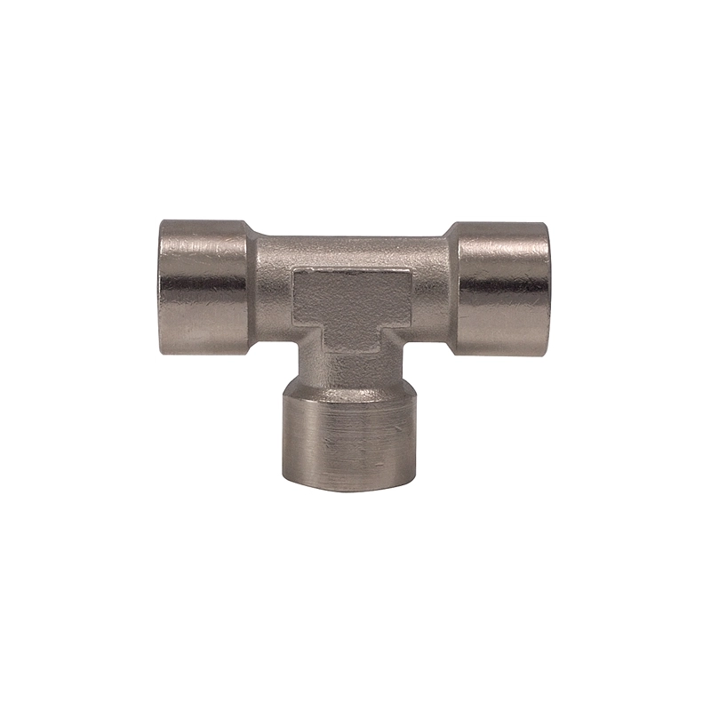 Raccordo a T in ottone nichelato. 3 femmine. Modello = misura pollici filetto