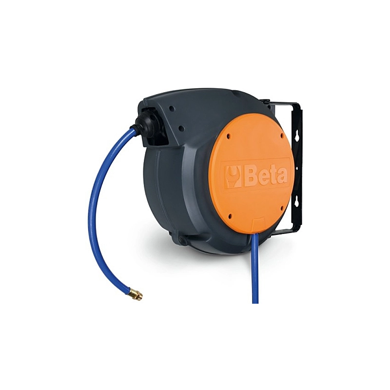 Avvolgicavo automatico con corpo in materiale plastico antiurto, per aria o acqua. Max pressione di utilizzo 15 bar. Tubo in poliuretano retinato. Struttura in polipropilene. Fornito con staffa orientabile a 180 gradi. Modello = diametro tubo mm/lunghezza tubo mt