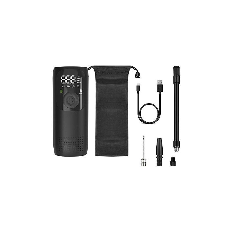 Compressore elettrico portatile e ricaricabile per gonfiare pneumatici di auto, moto, biciclette e palloni. Controllo elettronico. Tasti regolazione della pressione e tasto per la selezione dell'unita' di misura. Pressione max 150 psi. Batteria ricaricabile tramite cavetto USB. Dimensioni 44x157x64 mm. Peso 420 gr.