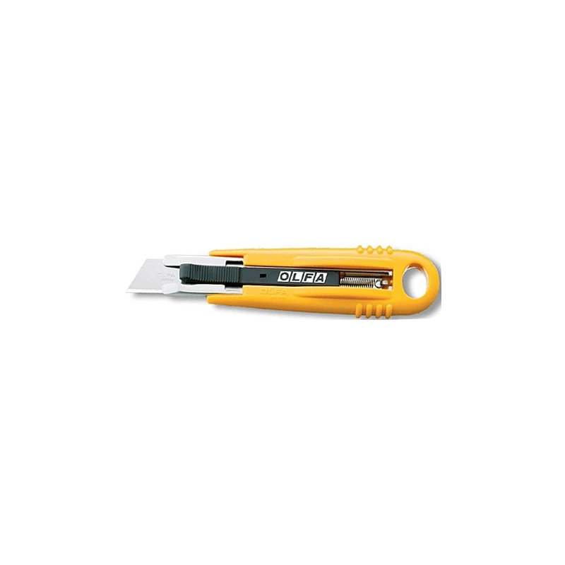 Cutter con lama trapezoidale a due taglienti che si retrae automaticamente dopo l'uso. Ideato secondo i principi di sicurezza della legge 626/94 in materia di prevenzione degli incidenti sul lavoro. Guida protettiva della lama per tagli sottosforzo.