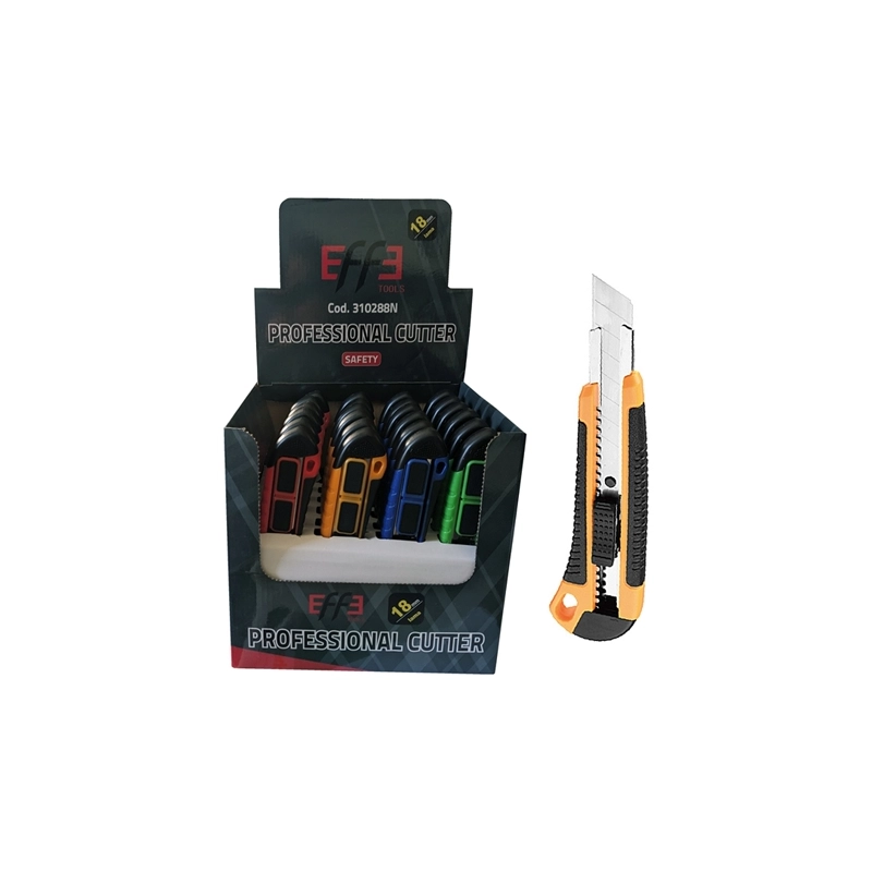 Espositore da banco composto da 24 cutter con lama da mm.18. Colori assortiti
