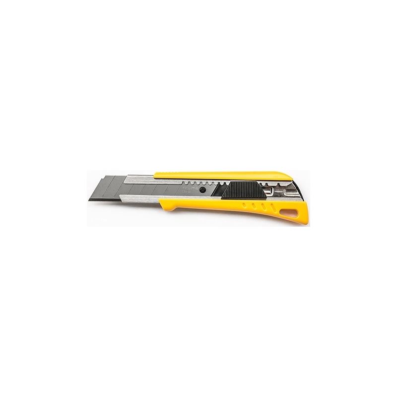 Corpo in resina termoplastica. Struttura interna in acciaio inox dentata per rafforzare il meccanismo autobloccante fino a kg 25. Modello = lama retraibile a spezzare da mm
