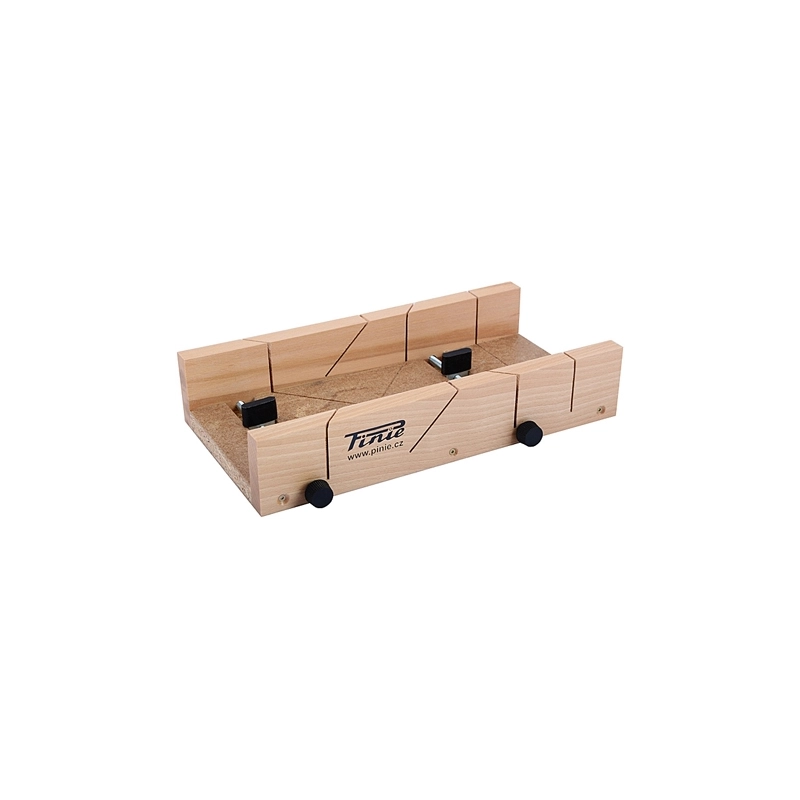 Tagliacornici in legno di faggio con angoli di 90 gradi e 45 gradi. Fornito con 2 morsetti per il bloccaggio del pezzo da tagliare. Spessore legno 19 mm. Dimensioni 350x140x50 mm. Peso 1,3 kg.