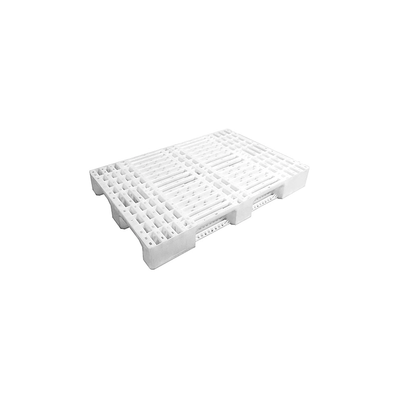 Pallet per uso alimentare. In materiale vergine, colore bianco. Portata statica kg 4300. Dimensioni 120x80x14,5 cm. Peso 12,5 kg