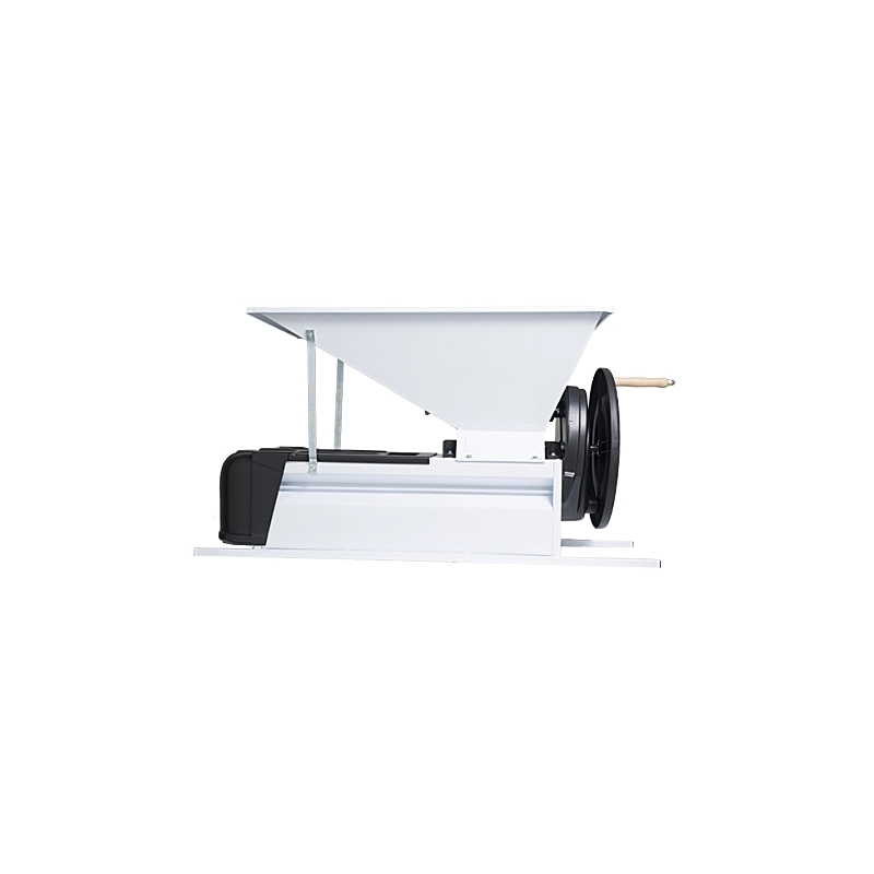 Dimensioni cm 90x50. Rulli in nylon da 220 mm. Griglia inox. Produzione 1000 kg/ora. Manuale