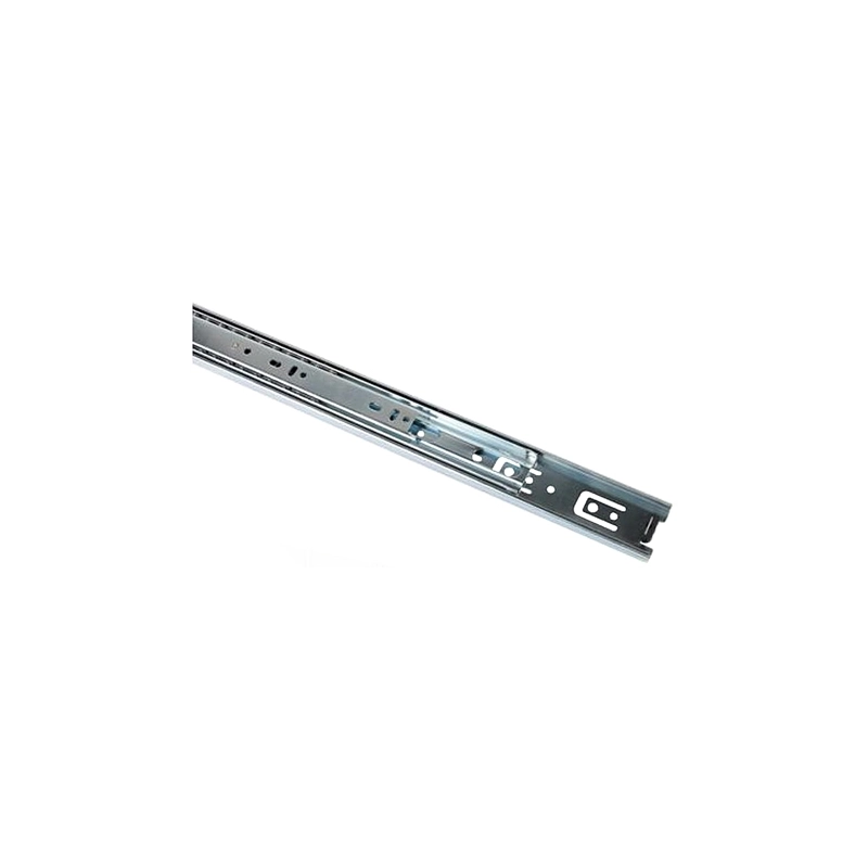 Guida su sfere ad estrazione totale. Fissaggio laterale con levetta per rimozione cassetto. Altezza guida 45,6 mm. Finitura zincata. Portata 45 kg. Modello = Lunghezza cm