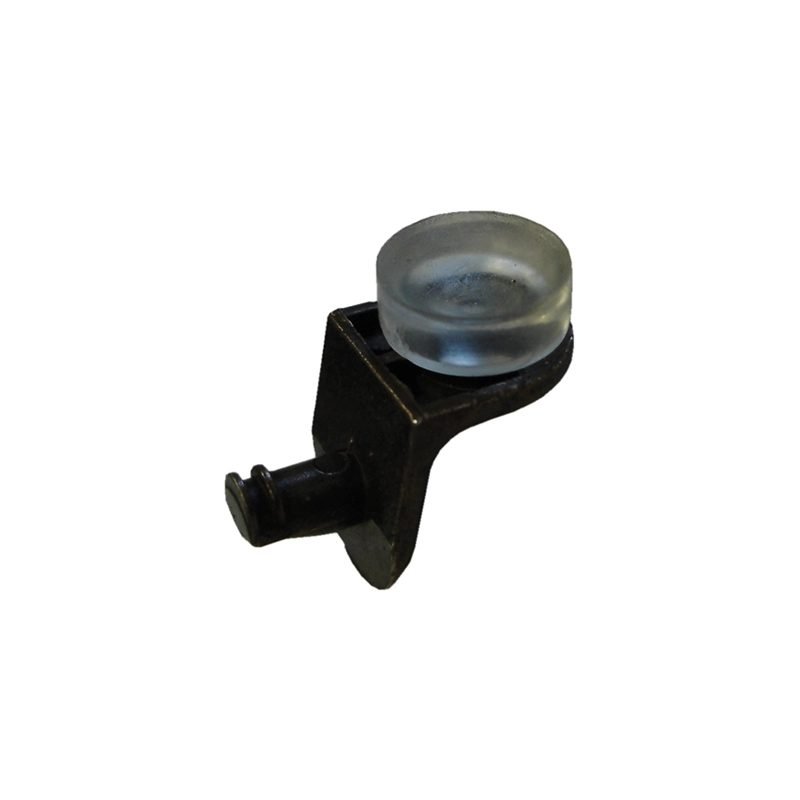 In zama con perno diam. mm.5 e ventosa di supporto in pvc tenero, trasparente. Finitura: nichelato