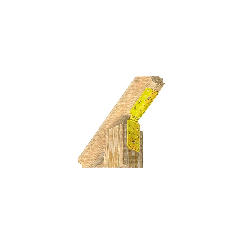 Per legni tondi diametro mm 80 - 100 con legno o superfici piane. In acciaio tropicalizzato. Spessore mm 2,2. Foro mm 5,5. Dimensioni mm 50x98x98