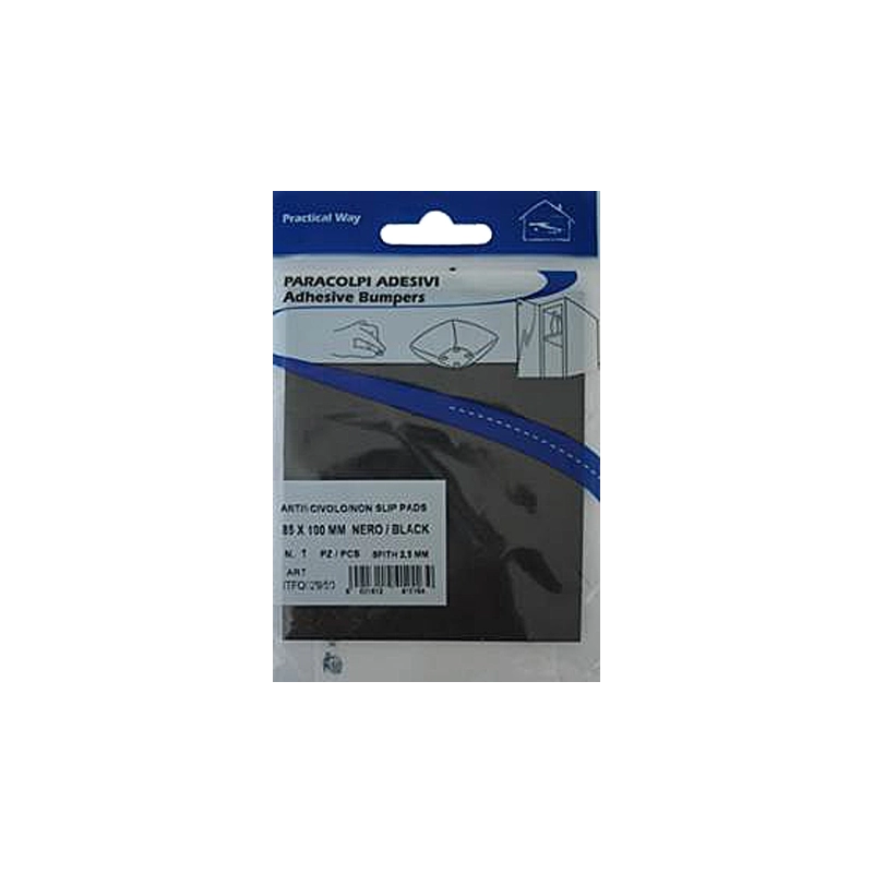 Antiscivolo colore nero. Foglio adesivo da ritagliare a misura desiderata. Dimensione mm 85 x 100 spessore 2,5 mm. Confezionato in blister.