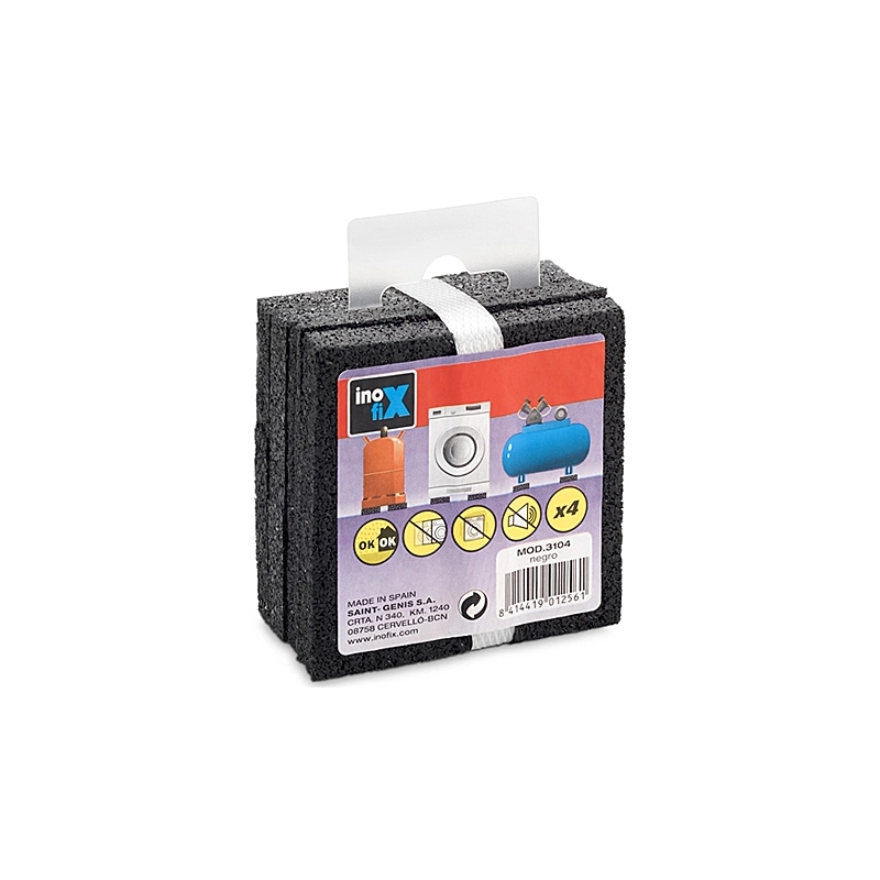 In granulare di gomma pressato per ridurre rumore e vibrazioni di lavatrici, elettrodomestici ed elettroutensili. Colore nero. In confezione da 4 pz. Dimensioni 75x75 mm