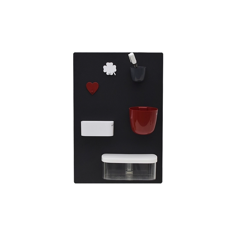 Set 7 accessori magnetici e lavagna in metallo. Dimensioni lavagna 38x56 cm. In confezione regalo. Utile in tutti gli ambienti della casa (cucina, ingresso, bagno, salotto, camera da letto) e dell'ufficio.