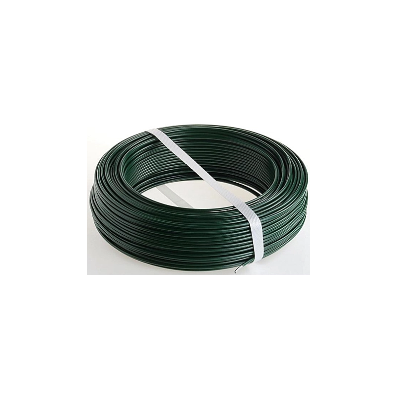 Filo zincato e plasticato in rotoli da 100 mt. Svolgimento facilitato dall'interno della bobina senza tagliare la confezione. Colore verde. Made in Italy. Modello = diametro filo mm