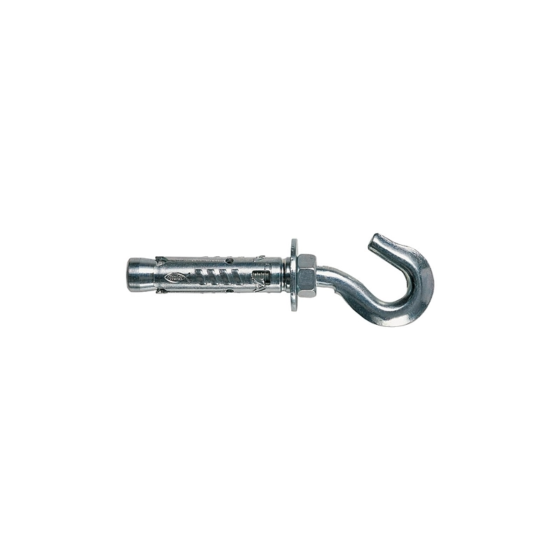 Tassello con gancio in acciaio zincato. Per fissaggi su calcestruzzo non fessurato, pietra naturale con struttura compatta, passerelle con cavi e macchinari. Modello = diametro x lunghezza tassello mm/sporgenza gancio mm/filettatura M x lunghezza mm