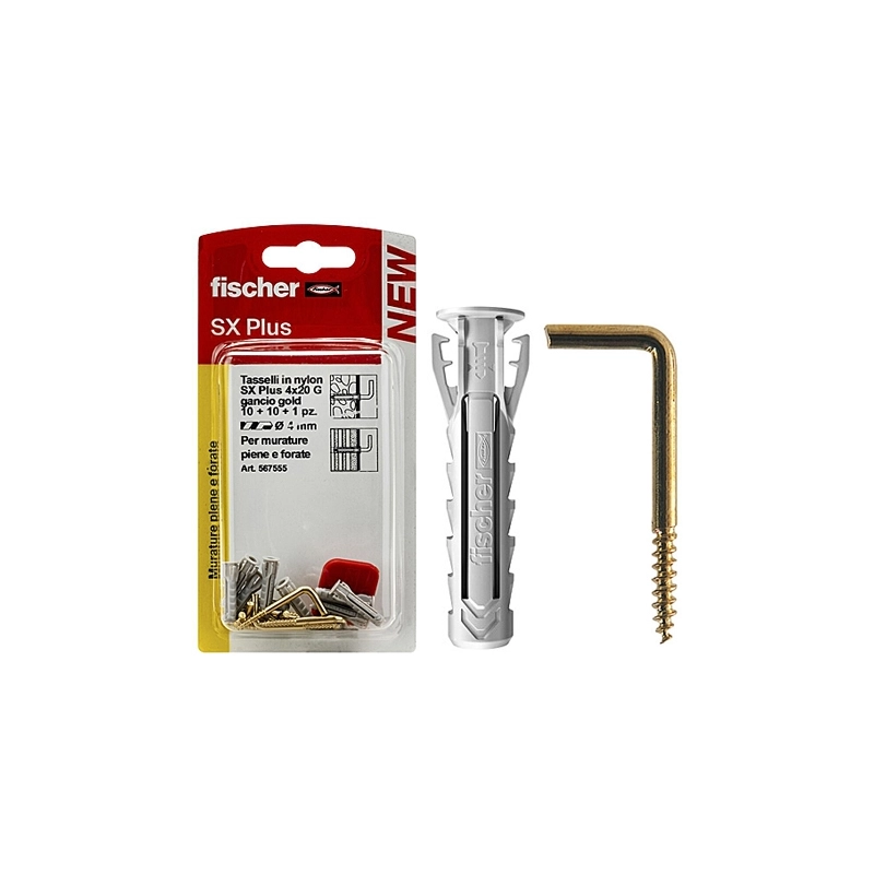Tasselli SX PLUS 4 diametro 4 mm con gancio appendiquadri ottonato. Confezione da 10 pz.
