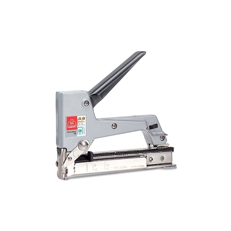 Utilizza punti e chiodini brads posizionati centralmente. Frontale apribile, regolatore di potenza. Per punti 53/8 - 10 - 12 - 14 - 16 mm. Per chiodini da mm. 13 - 15 (serie M 13 - M 15)