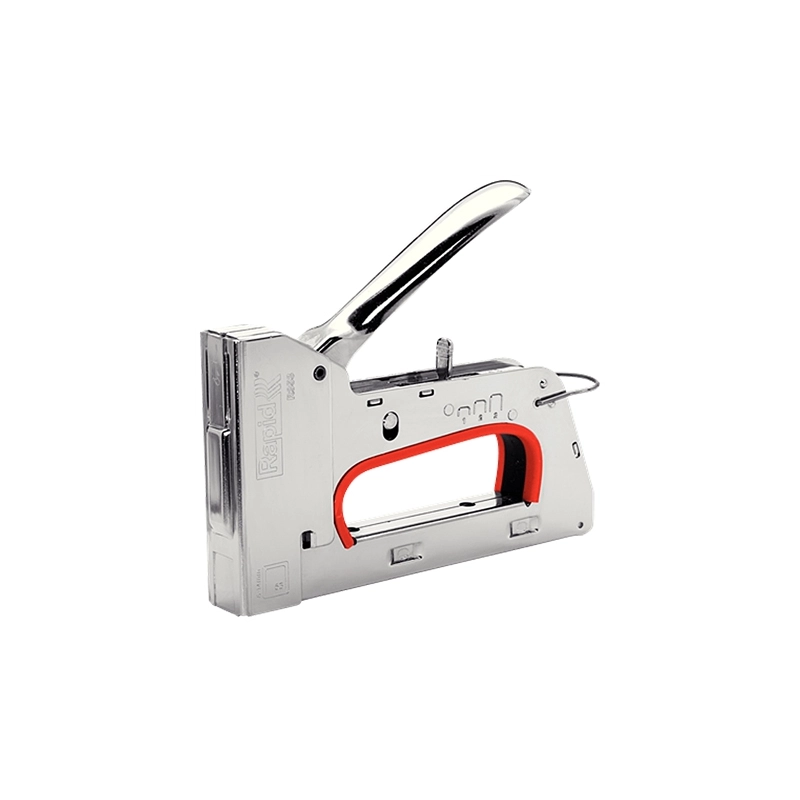 Fissatrice professionale in acciaio per graffe da 6-14 mm. Parti interne in acciaio temperato. Leva richiudibile. Tre regolazioni di potenza in funzione della lunghezza delle graffe e della durezza del materiale. 40% in meno di sforzo grazie al sistema brevettato RAPID. Modello = art.fornitore/tipo graffe