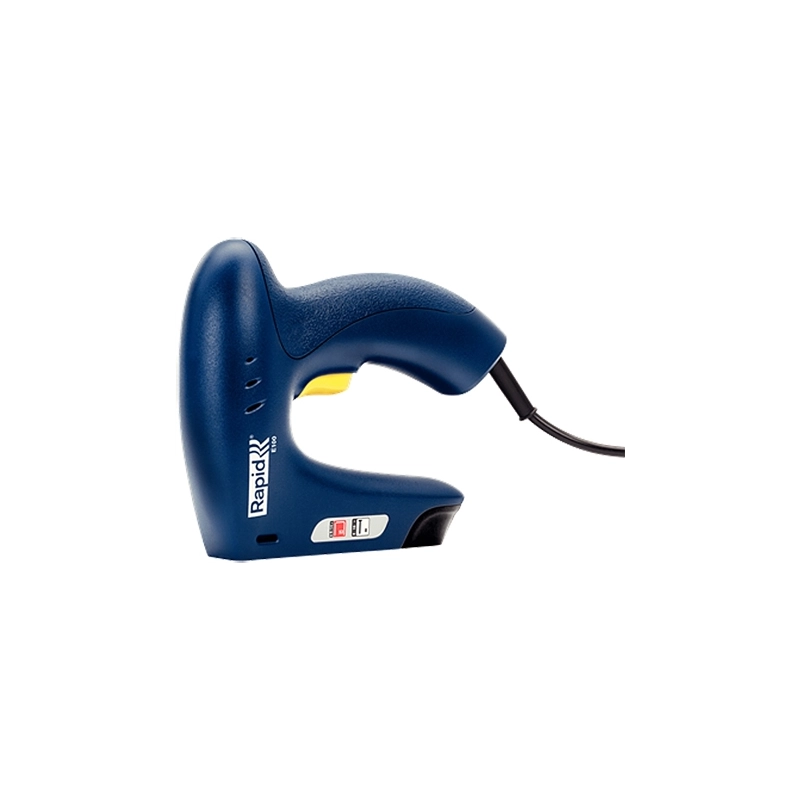 Fissatrice elettrica per graffe a filo fine n.53 da 6-14 mm e chiodini n.8 da 15 mm. Con interruttore on/off di sicurezza e sensore di sicurezza sul frontalino per evitare spari accidentali.