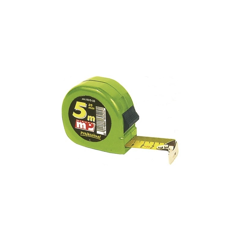 Custodia in ABS con clip. Nastro in acciaio con bloccaggio e rientro rapido. Modello = larghezza nastro in mm/lunghezza nastro in m