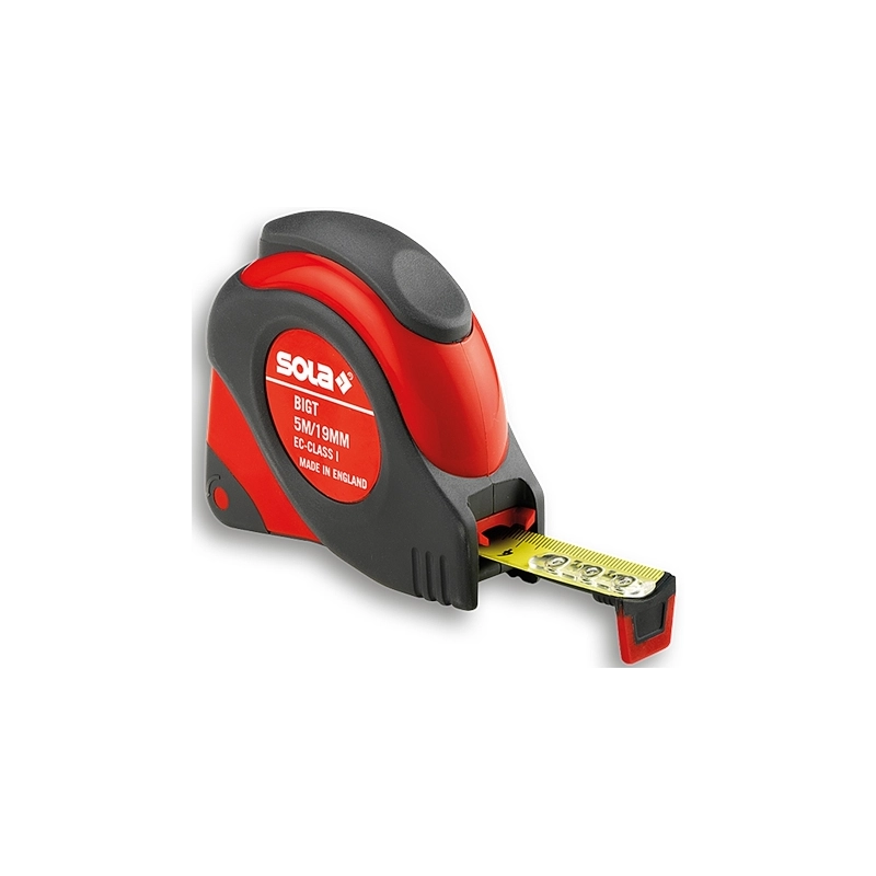 Innovativo flessometro professionale. Nastro in acciaio con verniciatura antiriflesso con terminale in gomma bi-componente. Nastro certificato classe 1A. Ammortizzatore di fine corsa. Freno ergonomico sul lato superiore. Modello = larghezza mm/lunghezza nastro m