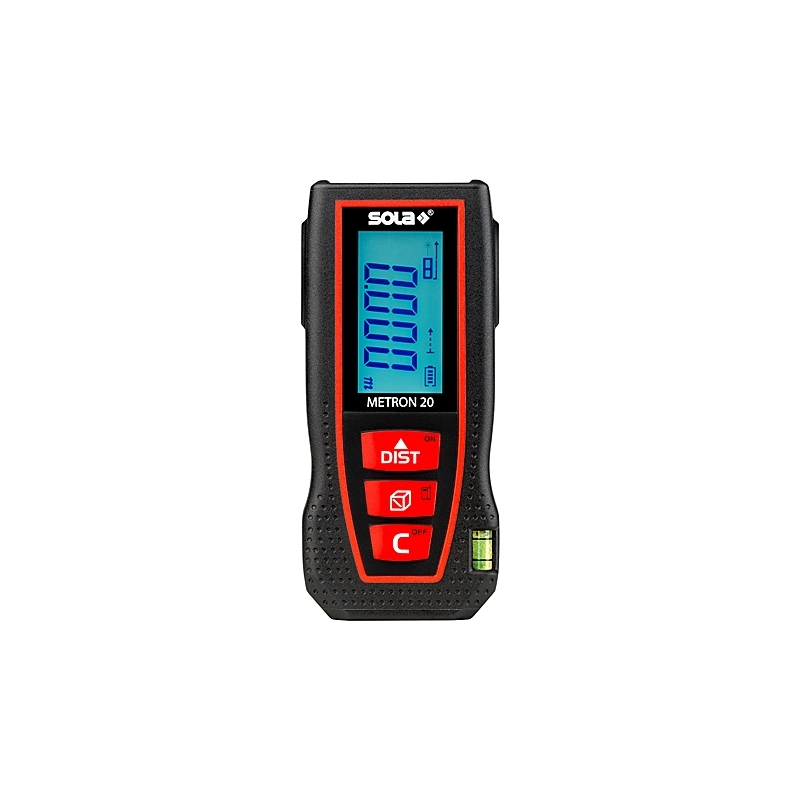 Misuratore laser compatto. Portata 20 mt. Precisione +/- 2,00 mm. Display illuminato a riga singola. Funzioni: misurazione continua, misurazione della lunghezza, della superficie e del volume. IP42. Dimensioni 105x47x27 mm. DIN EN 60825-1: 2007-10. Spegnimento automatico. Funziona con 2 batterie AAA in dotazione.