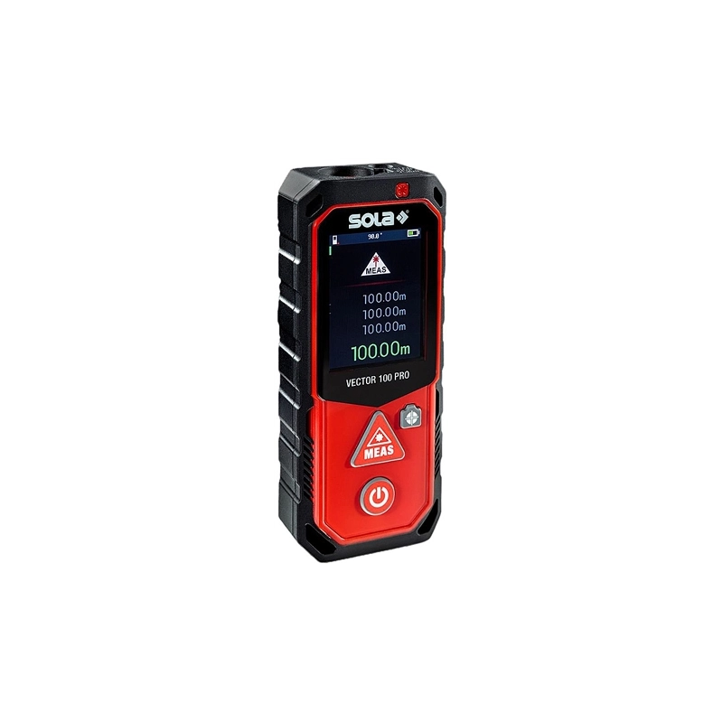 Misuratore laser per esterno con mirino digitale e video. Portata 100 mt. Precisione +/- 1,5 mm. Display illuminato con 4 righe valori. Funzioni: misura, misura continua, superficie, volume, misurazione indiretta di 2 e 3 punti, misurazione indiretta mediante angoli, sensore d'inclinazione, min/max, addizione e sottrazione. Dimensioni 115x50x25 mm. IP65. Funziona con 3 batterie 1,2V Ni-Mh.