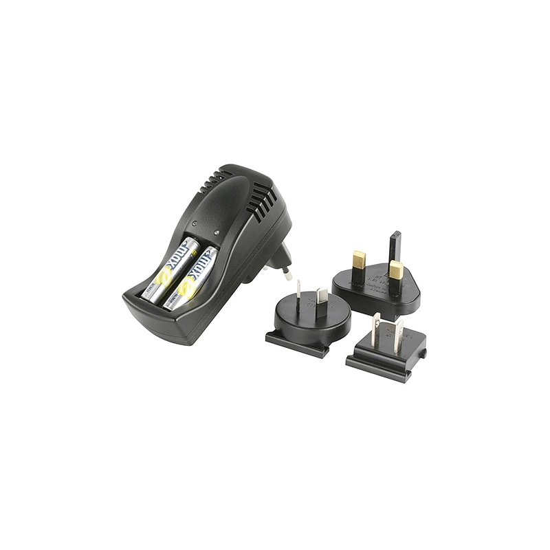 Adatto per la ricarica di 2 batterie AAA. Con 4 adattatori, per un utilizzo universale. 2 batterie stilo incluse.