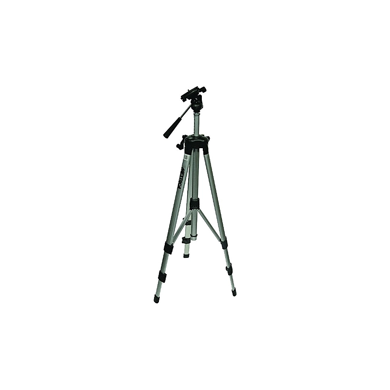 Treppiede in alluminio con piedini gommati. Apertura a raggiera, 3 raggi di sicurezza. Orientabile e inclinabile in tutte le direzioni. In custodia a tracolla. Altezza di lavoro da 55 a 150 cm. Elevazione a cremagliera graduata, corsa 28 cm. Attacco a vite da 1/4' sul supporto orientabile, attacco da 5/8' togliendo il supporto. Peso 1,2 kg.