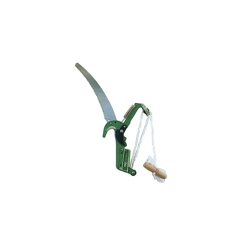 Forbici a pertica con doppia carrucola e seghetto tagliarami. Senza manico.