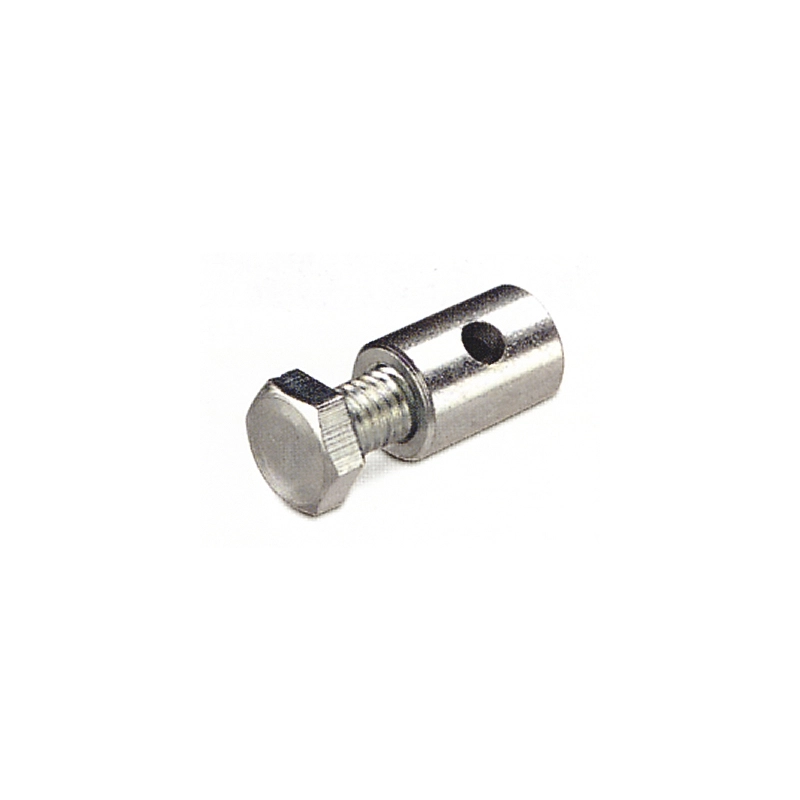 Morsetto con vite in testa. Foro diametro mm 3. Diametro barilotto 8 mm.